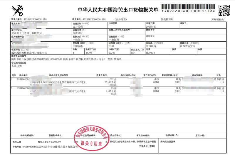 代理:进出口货物报关报检,包括:涉动植、食品等企业备案及产品检验检疫/包装性能单/危包证